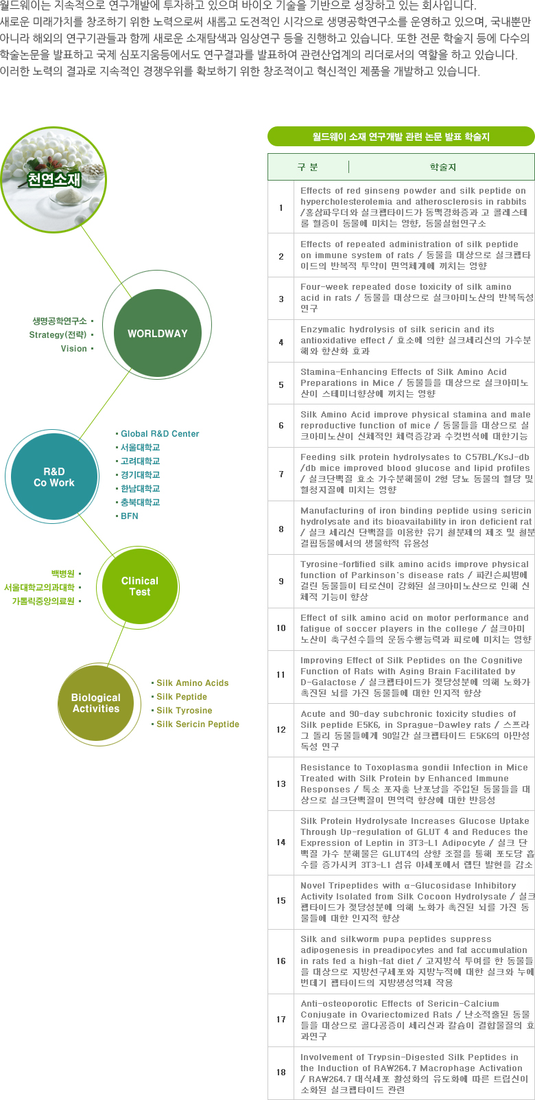 HOME > R&D > 원료 > R&D분야 및 실적내용