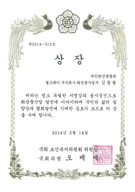[수상현황] 대한화장품협회-화장품산업 발전상
