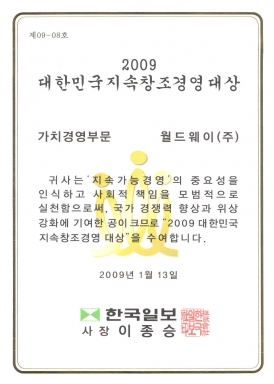 [수상현황] 한국일보-대한민국 지속창조경영대상